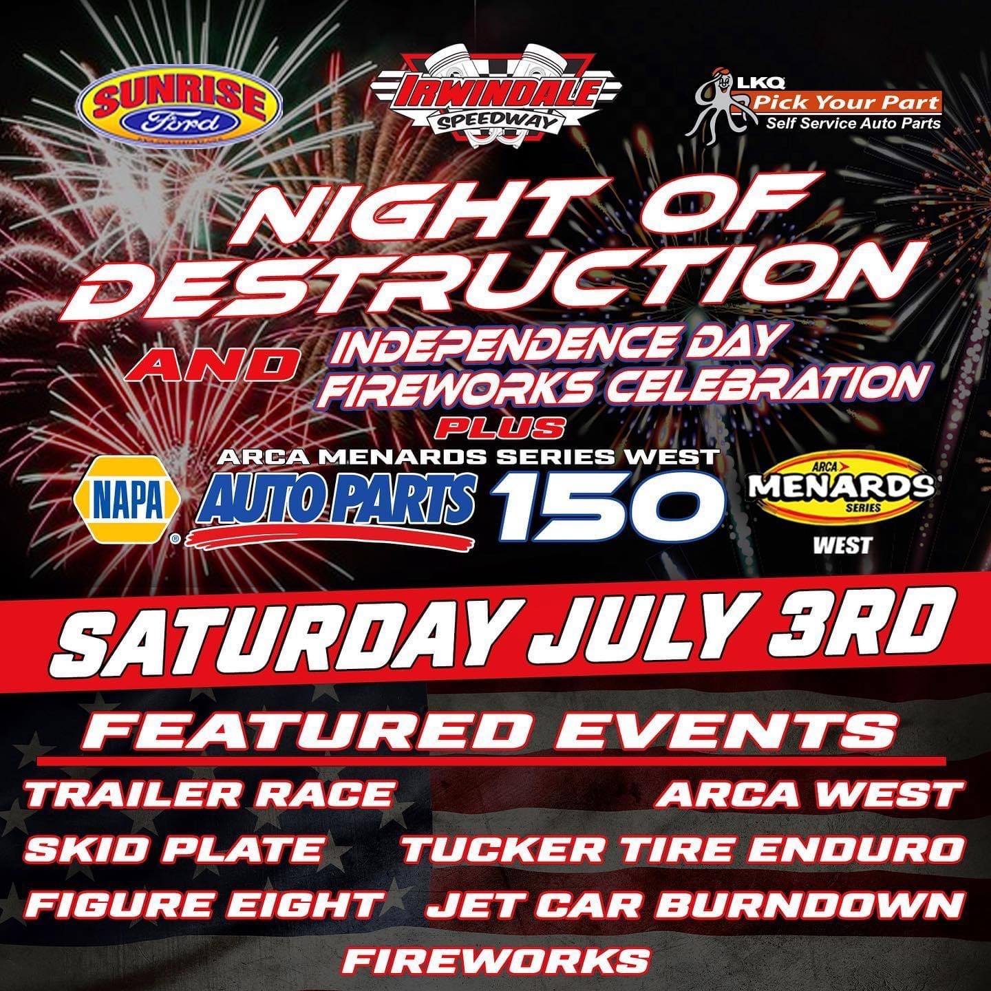 Happy Independence Day. So happy that we live in a free country. A really hot day at Irwindale Speedway for the Night of Destruction. Really missed some of the racers that didn’t make this race. It was a blast.